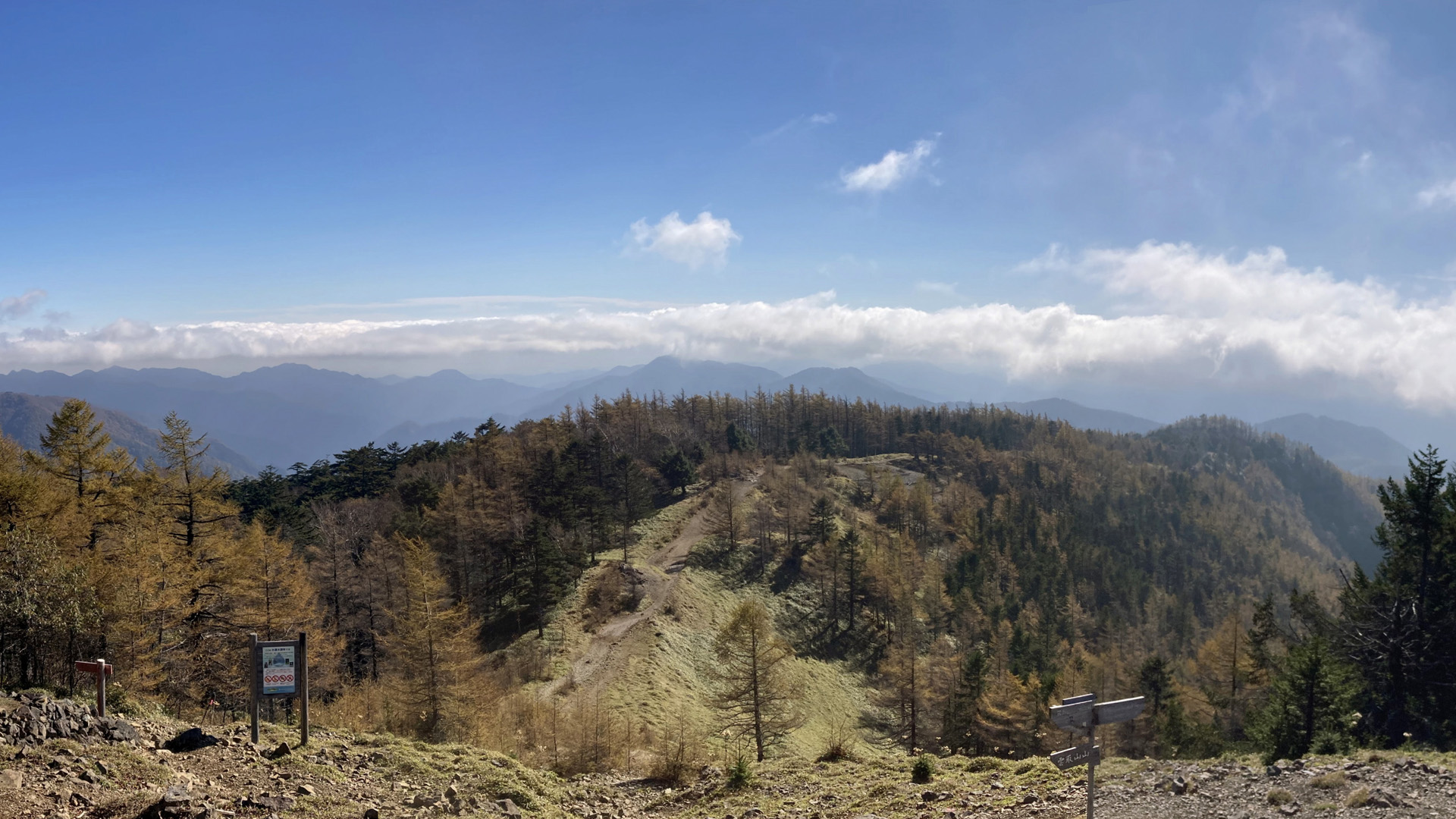 自分のハイキングは基本、電車による日帰りなのですが、どうやらこの雲取山は東京都の最高峰・日本百名山ということで興味はあったものの、電車とバスで行くにしてはちょっと時間帯的にスタート時間が遅くなる。ふもとに駐車場はあるけど小さいので土日なんかはすぐに満車になる、ということでなかなかチャレンジできなかったものの、とある日の平日、これに挑むチャンスができたので行ってみることに。 車となれば電車の時間は気にする必要が無いので、かなり早い時間に起きて、青梅街道をまっすぐに走って、無事に鴨沢の市営駐車場に到着。もちろん車はガラガラ。 軽く準備運動をして、いざ出発。 事前情報によると、かなり長いから山頂付近の山荘に一泊することを推奨、なんて情報が多かったけど、でも日帰りピストンで歩いている人の情報もまぁまぁ見ていたので、たぶんそっちで大丈夫だろうということで。 で、相変わらずのハイペースで歩いて歩いて、無事に山頂に到着。 掛かった時間、2時間55分。なんだ、こんなもんか。 山頂の避難小屋付近から今来た道を見返すと、これまた良い感じにパノラマが広がっています。 その景色を少し堪能して、またさっさと降り始める。 下りはまたラクチンなので、ずっこけたり捻挫しないよう気を付けつつも素早く歩いてゆき、2時間ちょいで無事下山。 トータルで5時間11分と、途中でダラダラ写真を撮らなければ5時間切りも余裕だったかもしれません。 そして距離も20kmジャスト。ここ最近、25km以上ひたすらアップダウンを歩くことが普通だった自分にとっては、「なーんだ、こんなもんか」と、むしろあっけなさを感じるのでありました。 ・・・が、帰宅後にいろいろ調べていると、あれ、どうやら山頂に辿り着いていない??? どうやら避難小屋近くに刺さっていた「雲取山」という木の標識を山頂と勘違いして、そこから目と鼻の先、数十メートルの本来の山頂を到達せずして下ってしまったようです。。。 これはいつかリベンジせねば。。。 |